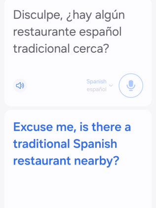In the Interpreter app, a conversation in two languages is transcribed and translated in real time.