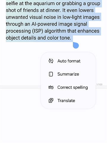 Compose text messages with AI at the helm in Chat Assist.19 Now you can say what you mean with the voice of a professional, a close friend, even just politely. Go from “how do I say this?” to “why didn’t I think of that?” in seconds.
